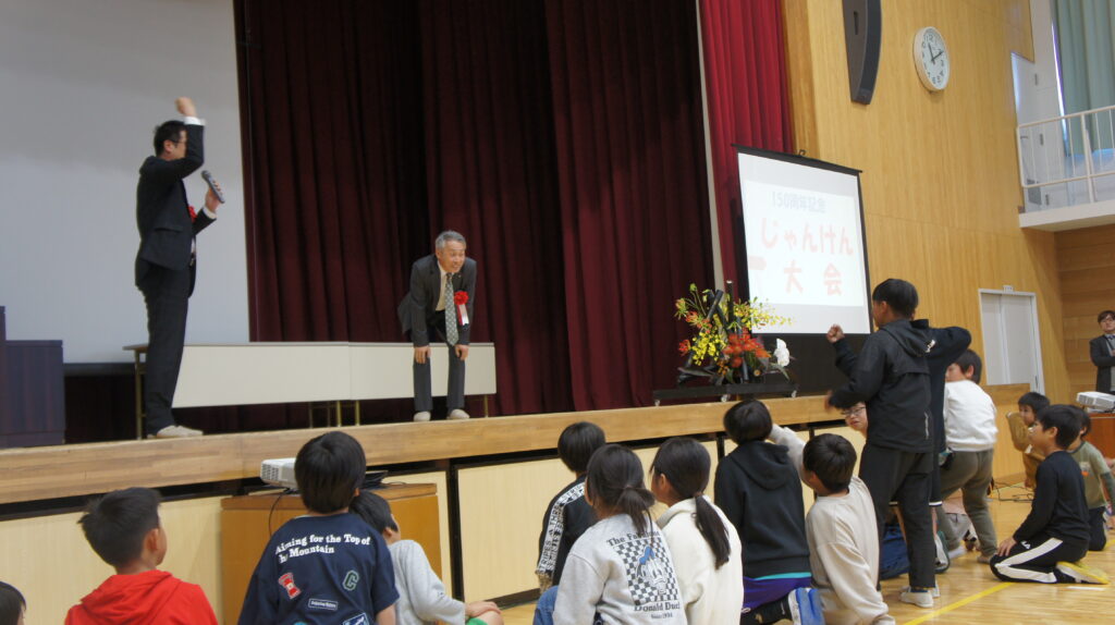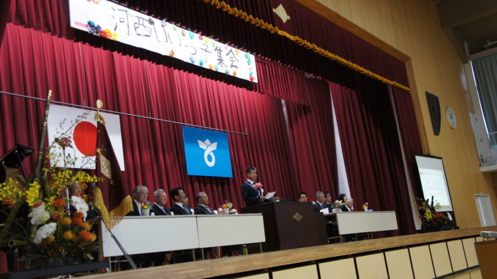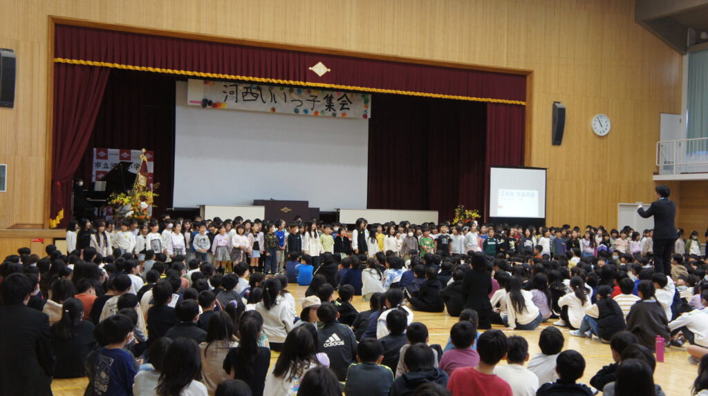 温かな立冬となりました。本日、河西小学校創立記念式典を実行員会様のご尽力によって盛大に開催することができました。守山市長をはじめ、多数のご来賓のご臨席を賜り、温かな雰囲気の中で挙行されましたことを大変ありがたく思います。実行委員長式辞、学校長あいさつ、来賓祝辞、教育後援会、同窓会、PTAからの記念品贈呈で1部を終え、児童集会という形で2部を行いました。2年生の音楽発表、じゃんけん大会で大いに盛り上がり子どもたちにも満足の笑みがたくさん見られました。多くの方に支えられて河西小学校は日々の教育活動に取り組めていることに改めて感謝いたします。