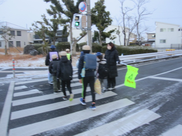 朝から雪がちらつく中での登校となりました。保護者の皆様、地域の皆様に見守られながらの集団登校です。大変寒い中、ありがとうございました。登校後、多くの子どもたちが雪の様子を楽しんでいました。