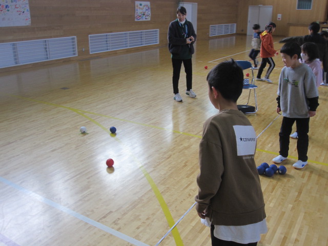 1月13(火) 3年生がゲストティーチャーの指導のもと、「ボッチャ」を体験しました。ボッチャとはヨーロッパ発祥のパラリンピックの正式種目である競技です。年齢や障がいの有無に関わらず、だれもが楽しめるユニバーサルスポーツとして注目されています。子どもたちはグループを赤、青のチームに分かれて楽しい時間を過ごしました。